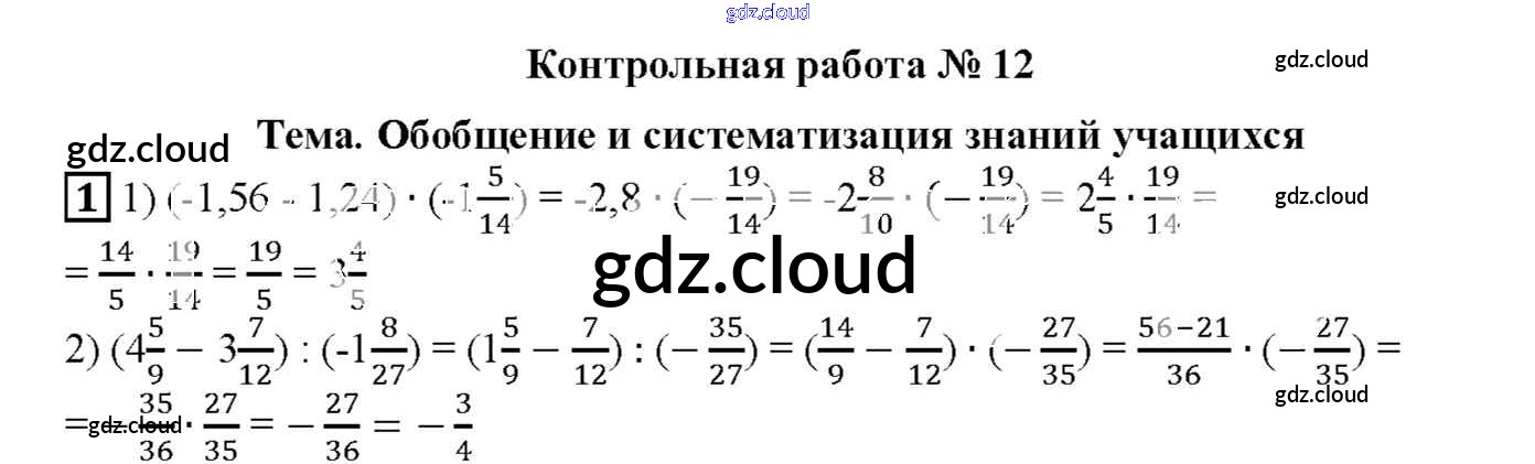 КР-12. Варианты Ответы к контрольным работам по Математике 6 класс Дидактические материалы Мерзляк Алгоритм успеха Вентана-граф
