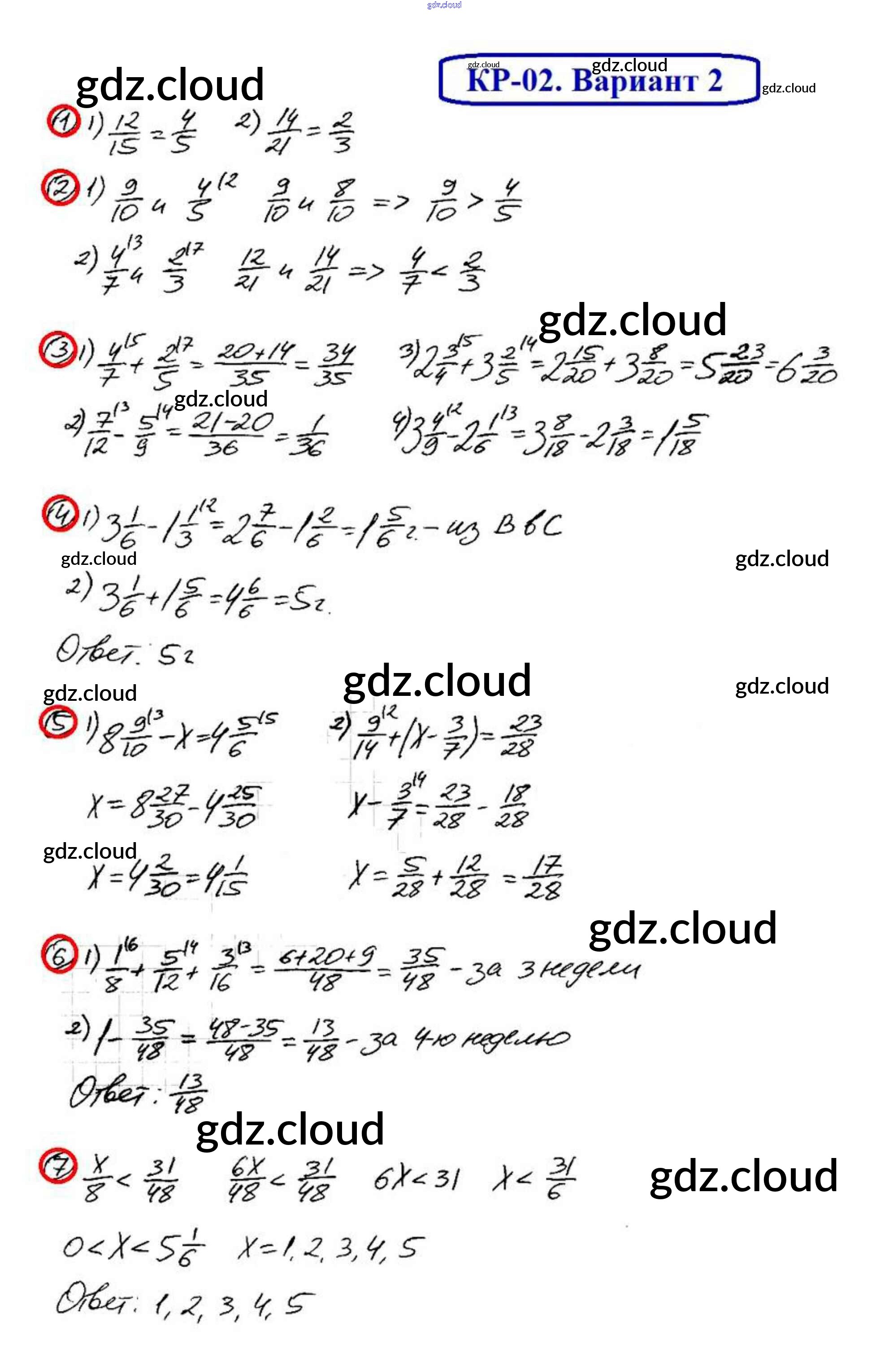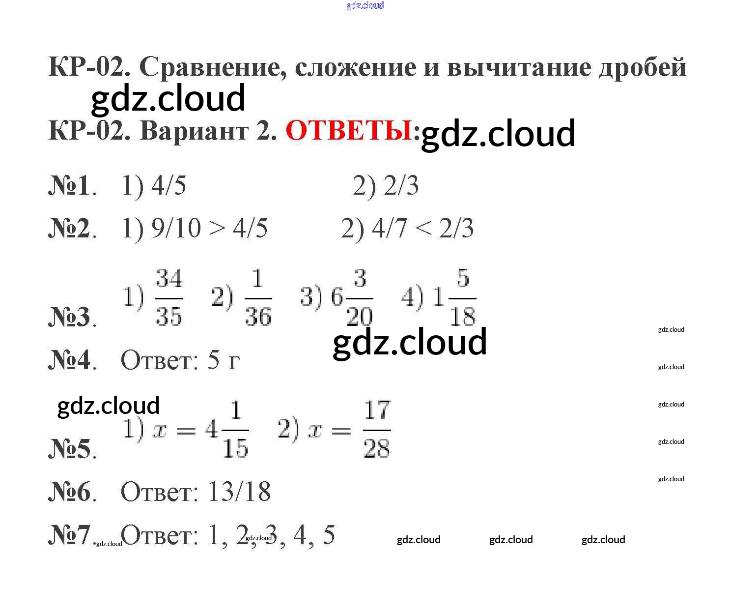 КР-2. Варианты Ответы к контрольным работам по Математике 6 класс Дидактические материалы Мерзляк Алгоритм успеха Вентана-граф