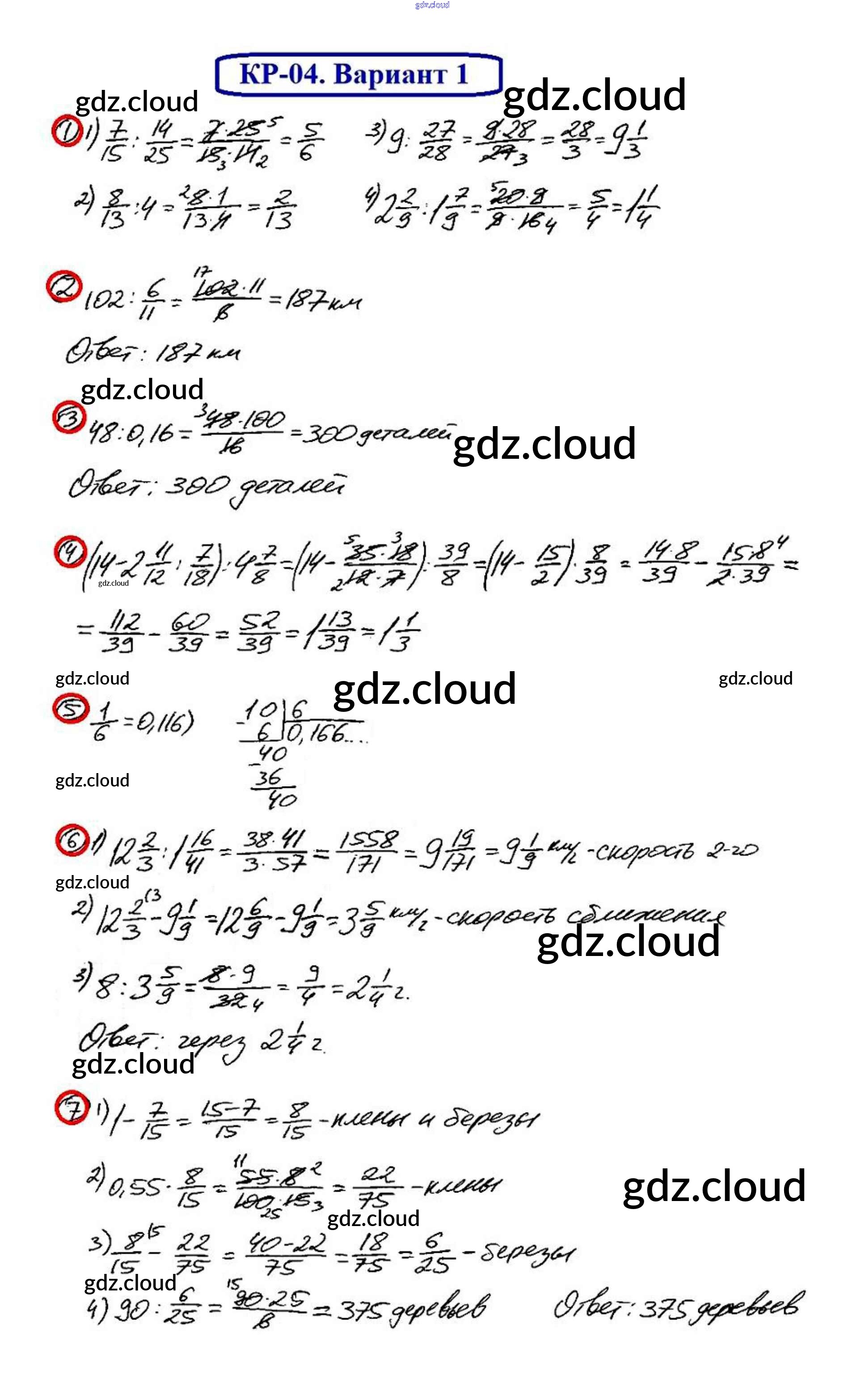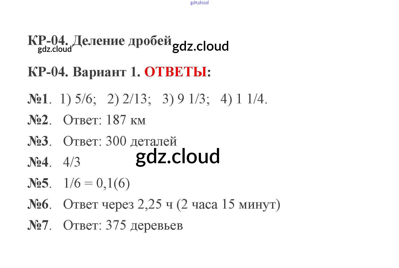 КР-4. Варианты Ответы к контрольным работам по Математике 6 класс Дидактические материалы Мерзляк Алгоритм успеха Вентана-граф