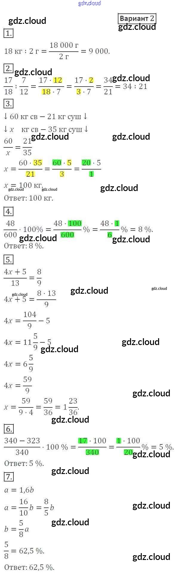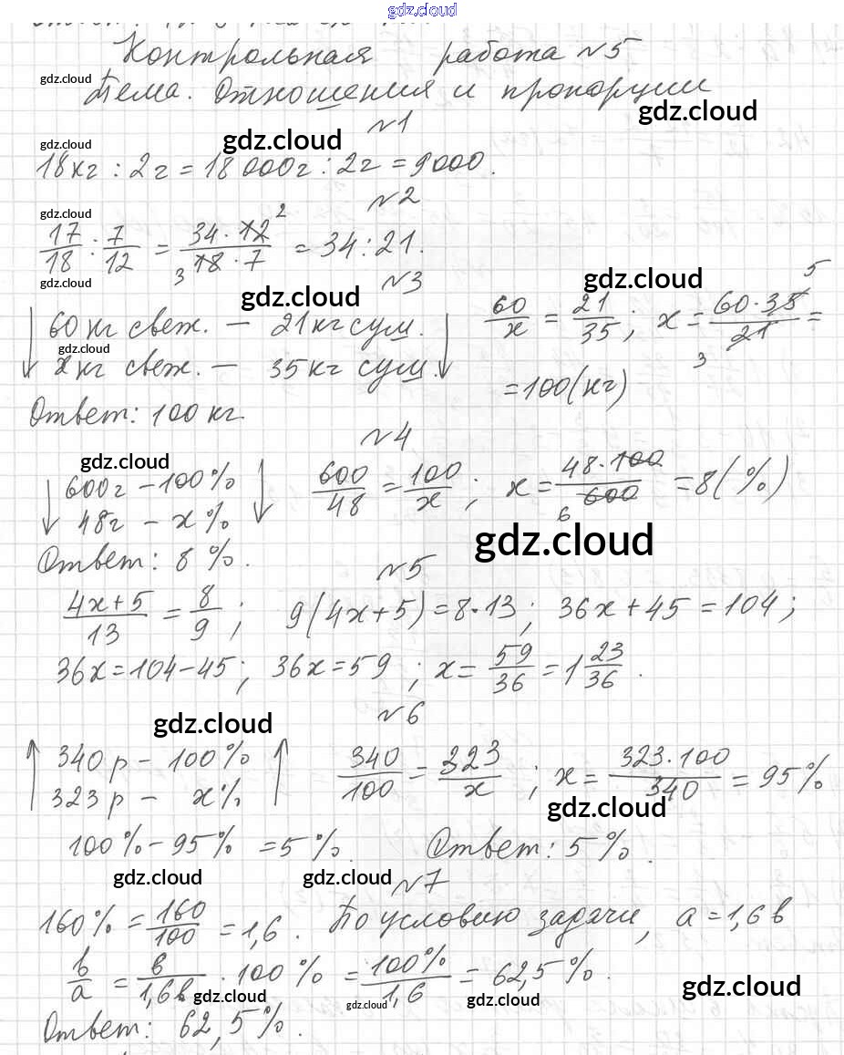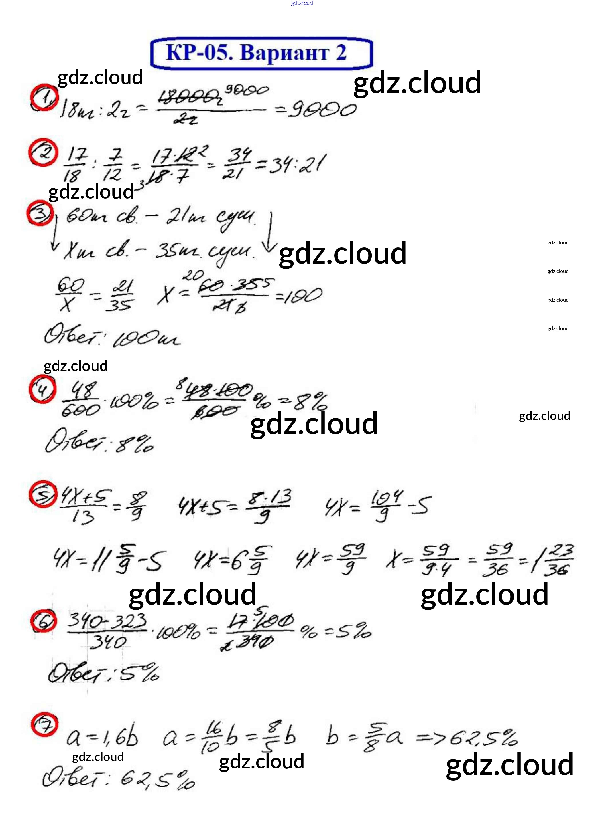 КР-5. Варианты Ответы к контрольным работам по Математике 6 класс Дидактические материалы Мерзляк Алгоритм успеха Вентана-граф
