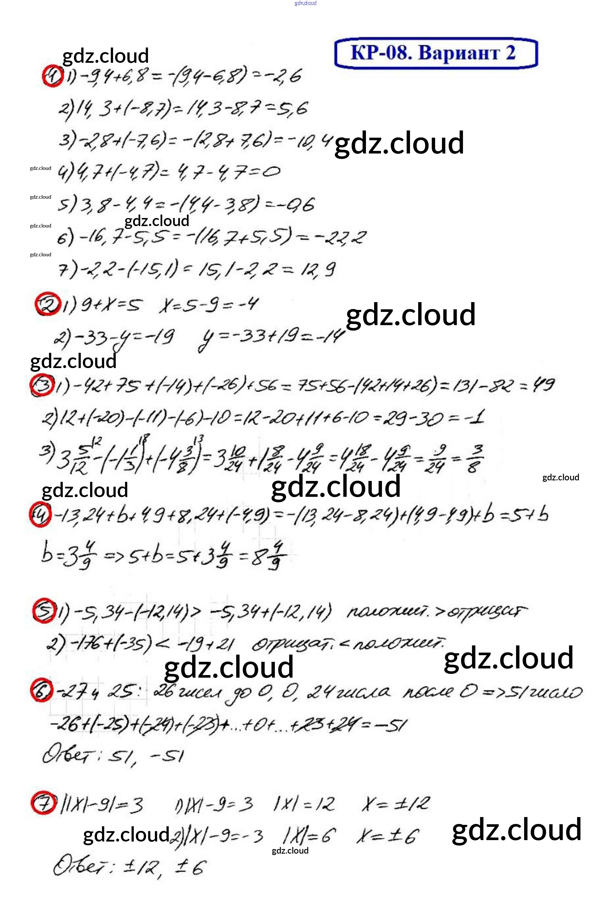 КР-8. Варианты Ответы к контрольным работам по Математике 6 класс Дидактические материалы Мерзляк Алгоритм успеха Вентана-граф