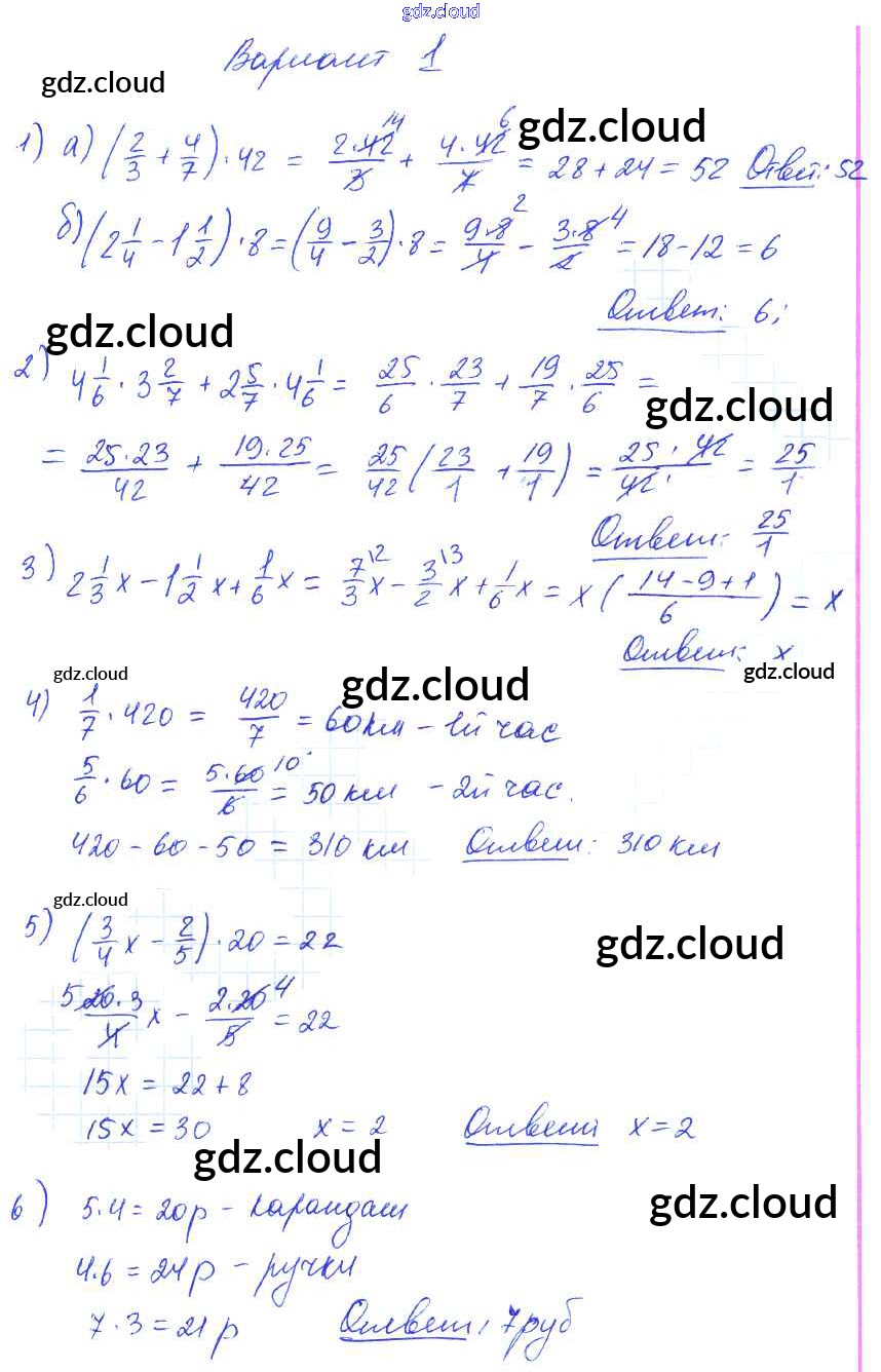 СР-15. Варианты Ответы к Самостоятельным работам по Математике 6 класс Дидактические материалы Попов УМК Экзамен