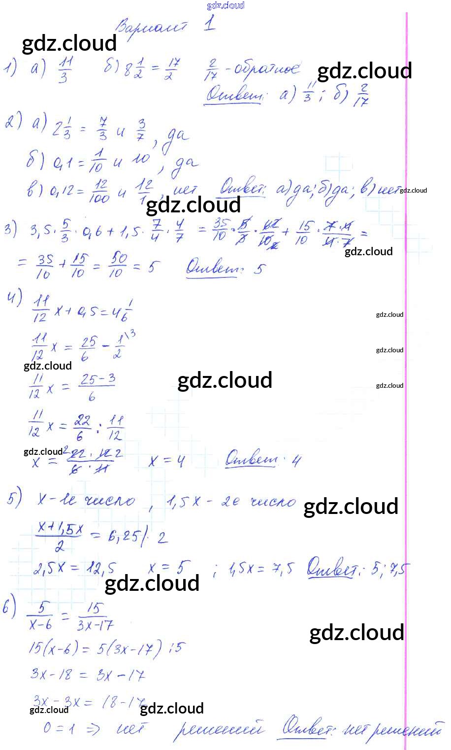 СР-16. Варианты Ответы к Самостоятельным работам по Математике 6 класс Дидактические материалы Попов УМК Экзамен