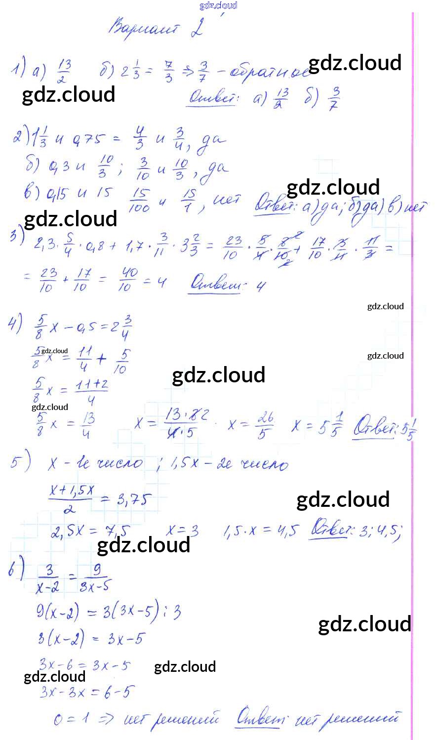 СР-16. Варианты Ответы к Самостоятельным работам по Математике 6 класс Дидактические материалы Попов УМК Экзамен
