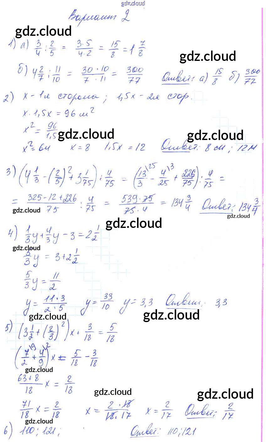 СР-17. Варианты Ответы к Самостоятельным работам по Математике 6 класс Дидактические материалы Попов УМК Экзамен
