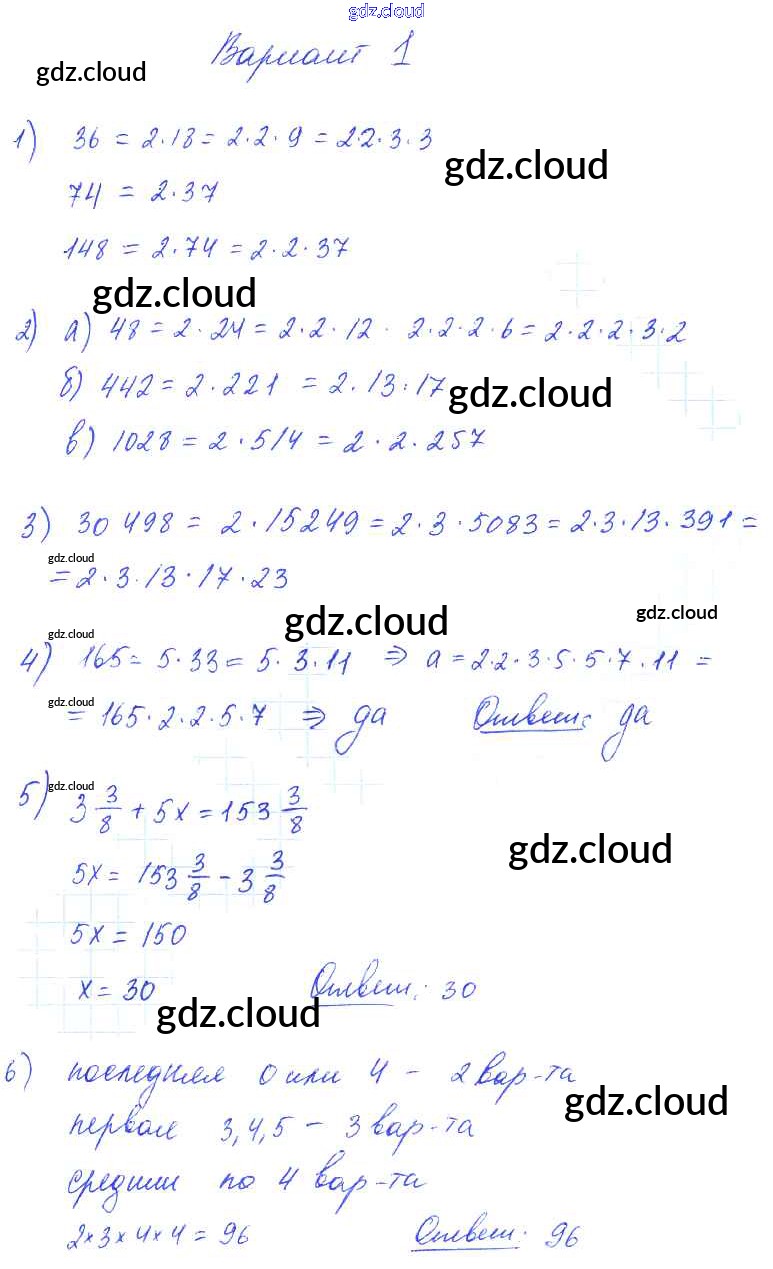 СР-5. Варианты Ответы к Самостоятельным работам по Математике 6 класс Дидактические материалы Попов УМК Экзамен