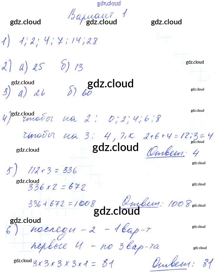 КР-1. Варианты Ответы к Контрольным работам по Математике 6 класс Дидактические материалы Попов УМК Экзамен