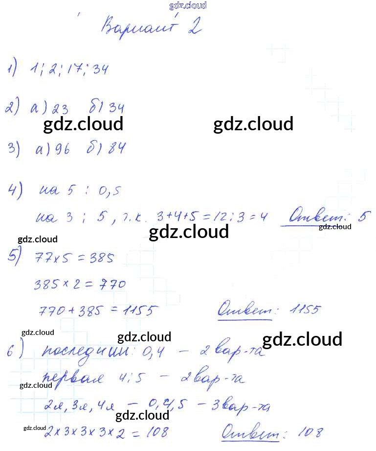 КР-1. Варианты Ответы к Контрольным работам по Математике 6 класс Дидактические материалы Попов УМК Экзамен