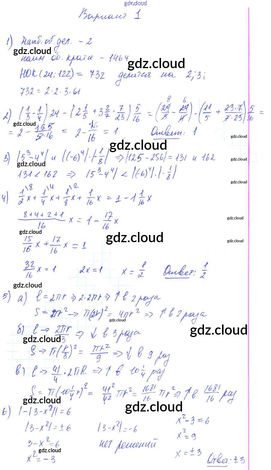 КР-10. Варианты Ответы к Контрольным работам по Математике 6 класс Дидактические материалы Попов УМК Экзамен