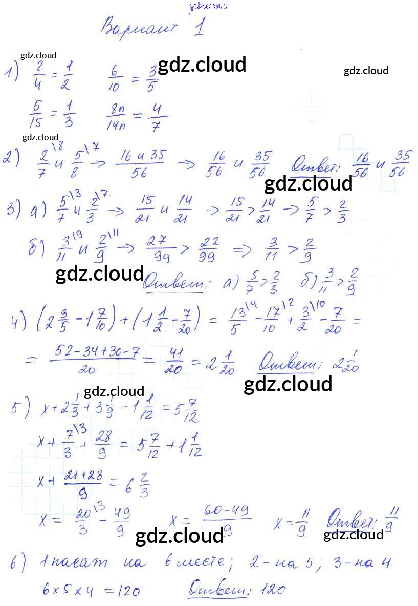КР-2. Варианты Ответы к Контрольным работам по Математике 6 класс Дидактические материалы Попов УМК Экзамен