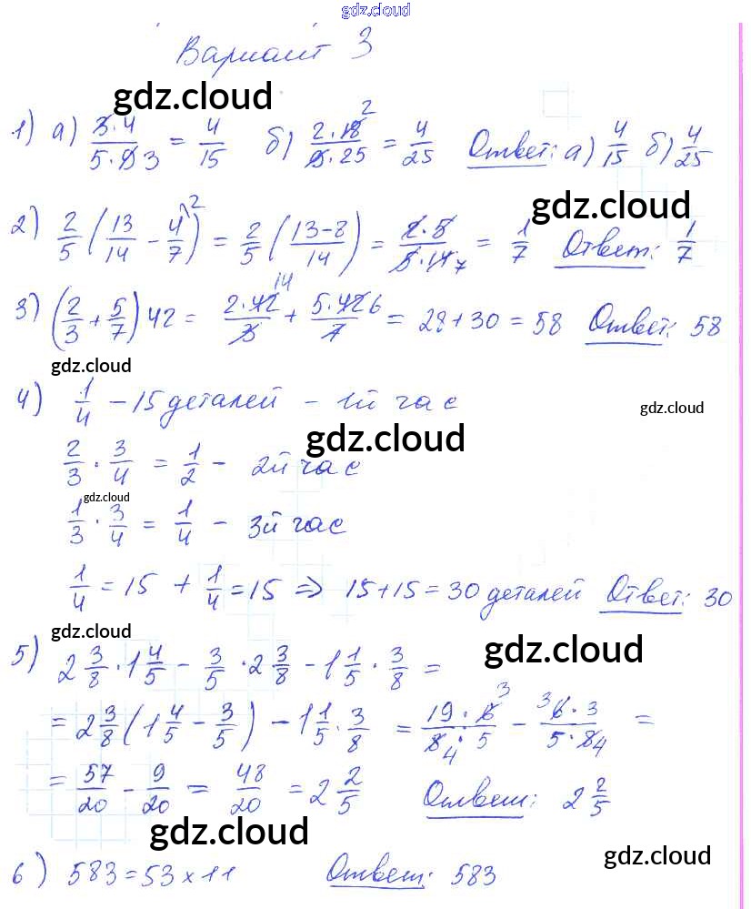 КР-3. Варианты Ответы к Контрольным работам по Математике 6 класс Дидактические материалы Попов УМК Экзамен
