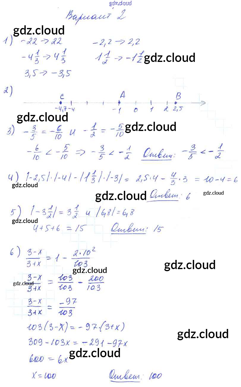 КР-6. Варианты Ответы к Контрольным работам по Математике 6 класс Дидактические материалы Попов УМК Экзамен