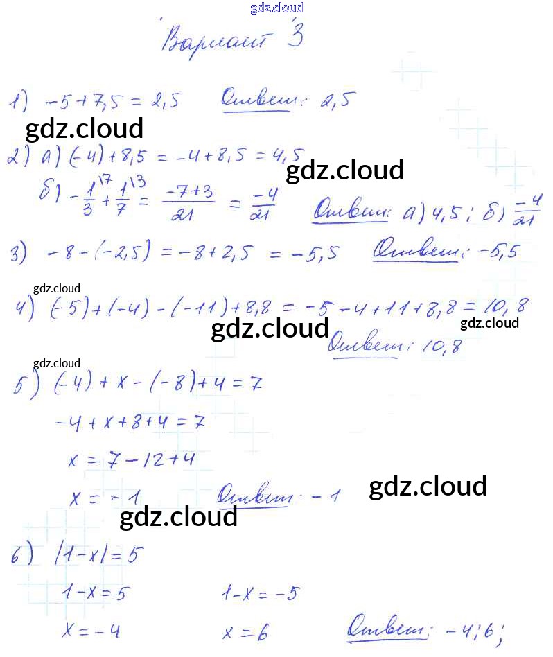 КР-7. Варианты Ответы к Контрольным работам по Математике 6 класс Дидактические материалы Попов УМК Экзамен