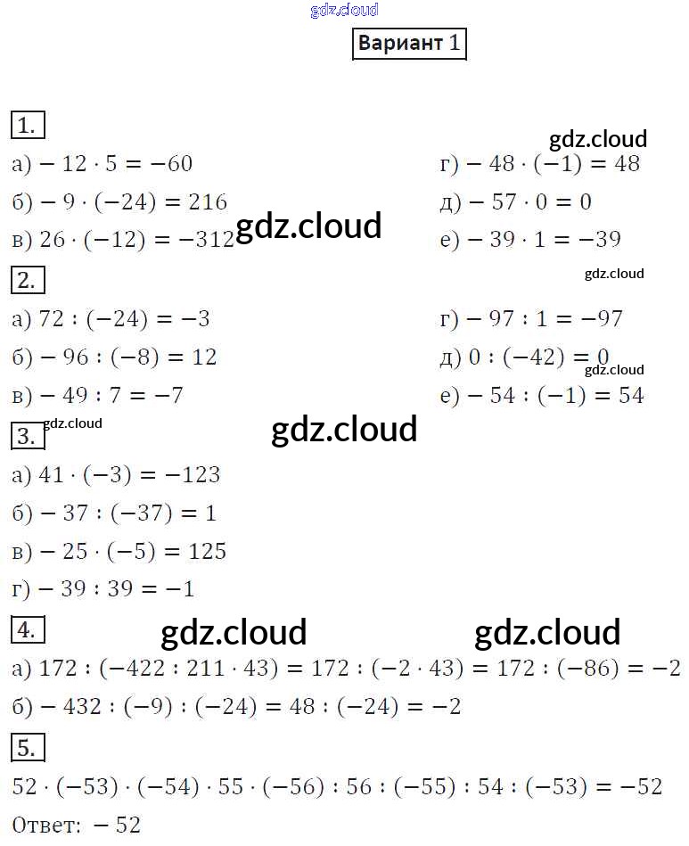 СР-10. Варианты Ответы к Самостоятельным работам по Математике 6 класс Дидактические материалы Потапов МГУ - школе Просвещение