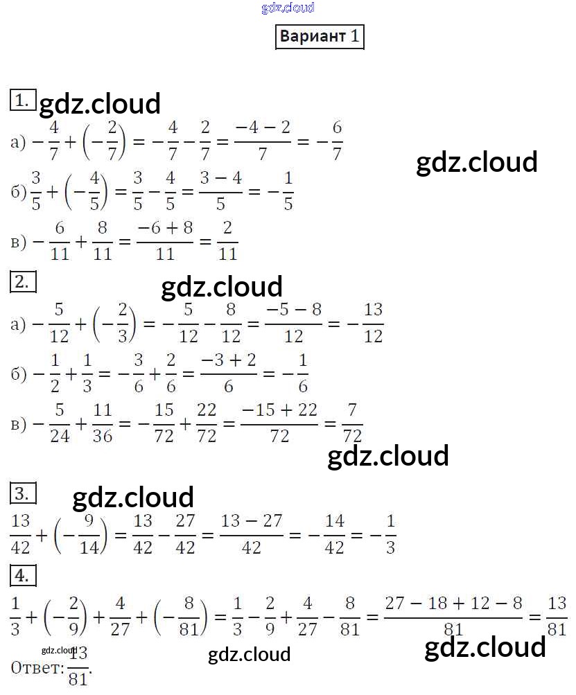 СР-15. Варианты Ответы к Самостоятельным работам по Математике 6 класс Дидактические материалы Потапов МГУ - школе Просвещение