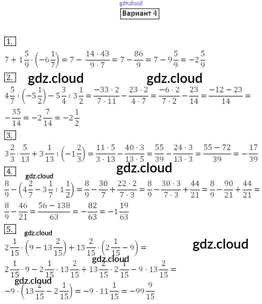 СР-20. Варианты Ответы к Самостоятельным работам по Математике 6 класс Дидактические материалы Потапов МГУ - школе Просвещение