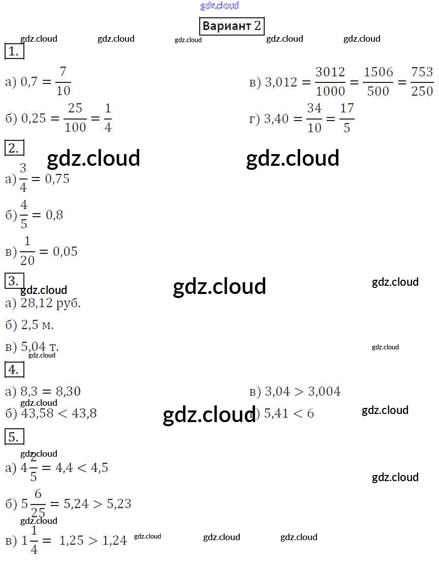 СР-26. Варианты Ответы к Самостоятельным работам по Математике 6 класс Дидактические материалы Потапов МГУ - школе Просвещение