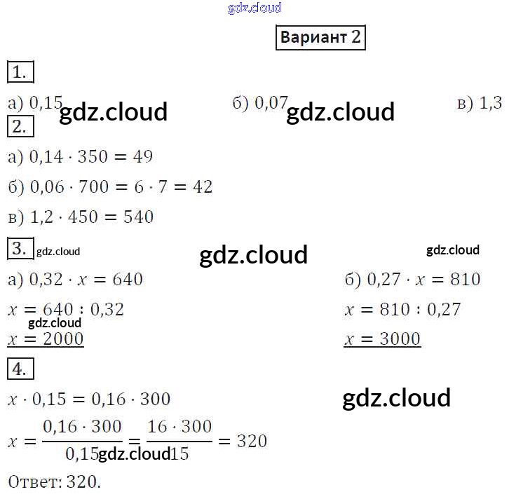 СР-30. Варианты Ответы к Самостоятельным работам по Математике 6 класс Дидактические материалы Потапов МГУ - школе Просвещение