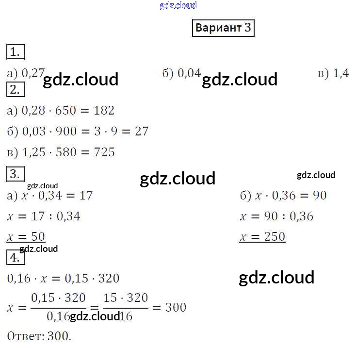 СР-30. Варианты Ответы к Самостоятельным работам по Математике 6 класс Дидактические материалы Потапов МГУ - школе Просвещение