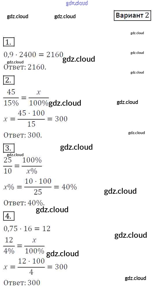 СР-4. Варианты Ответы к Самостоятельным работам по Математике 6 класс Дидактические материалы Потапов МГУ - школе Просвещение