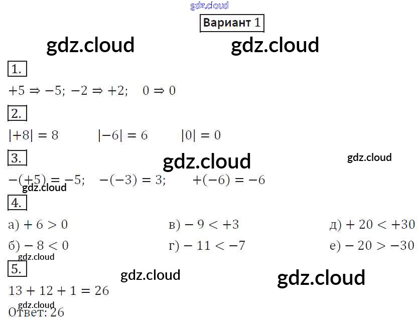 СР-8. Варианты Ответы к Самостоятельным работам по Математике 6 класс Дидактические материалы Потапов МГУ - школе Просвещение
