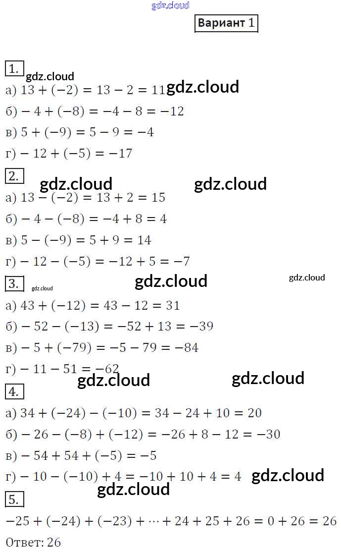 СР-9. Варианты Ответы к Самостоятельным работам по Математике 6 класс Дидактические материалы Потапов МГУ - школе Просвещение