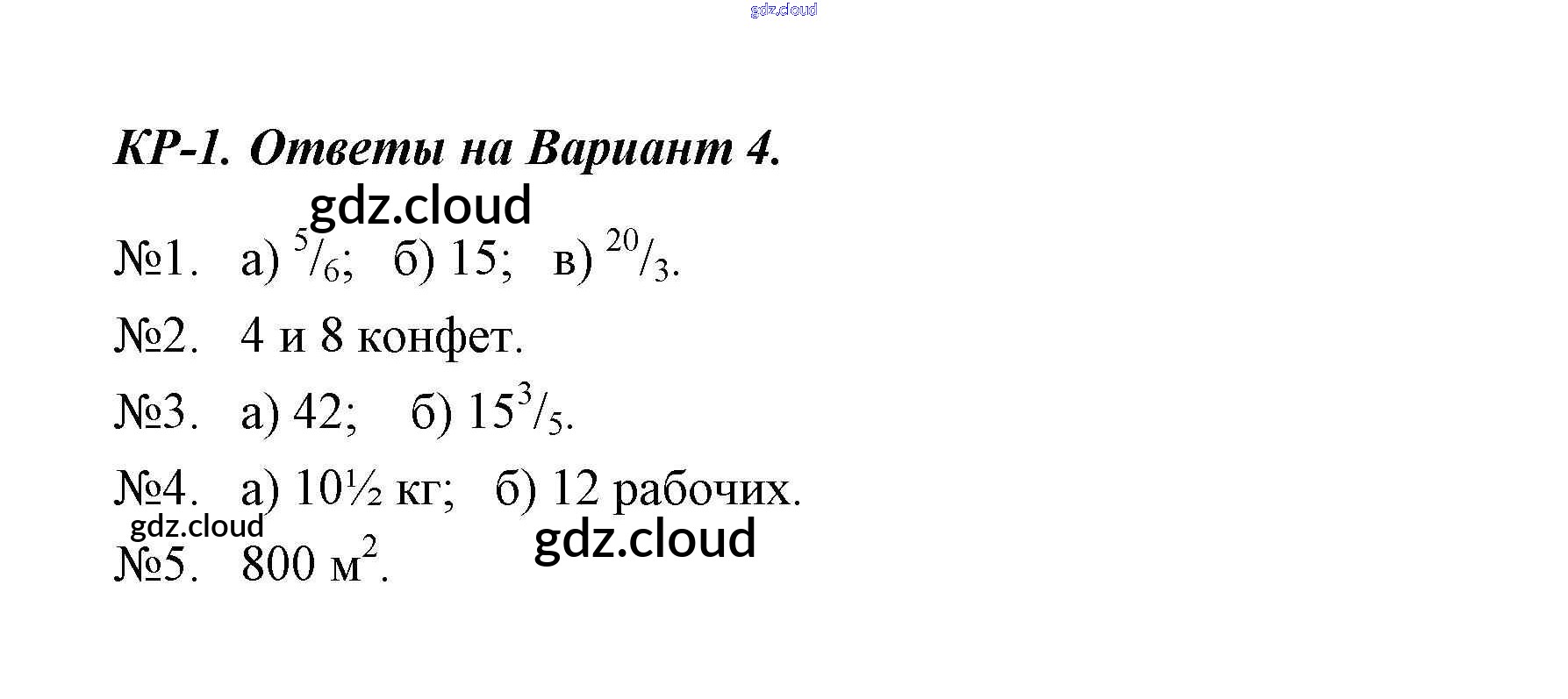 КР-1. Варианты Ответы к Контрольным работам по Математике 6 класс Дидактические материалы Потапов МГУ - школе Просвещение
