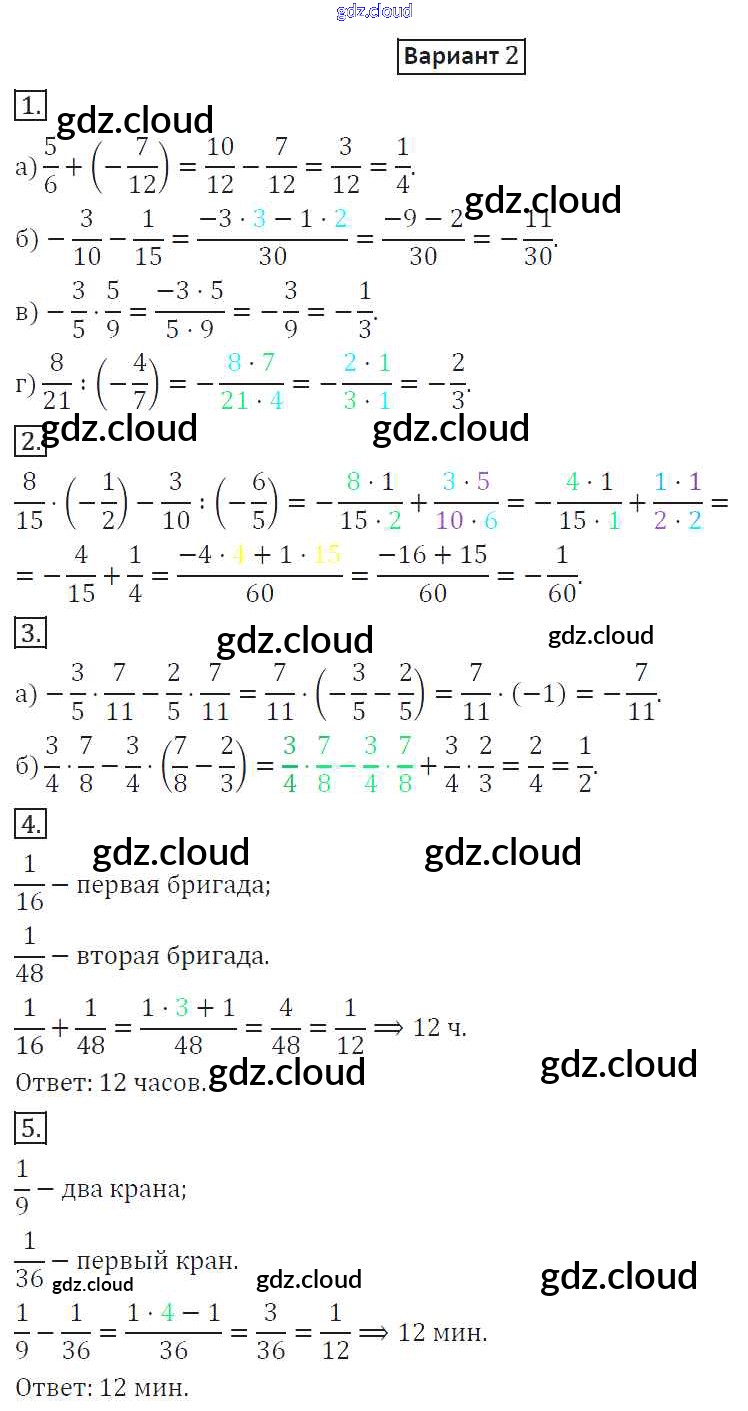 КР-4. Варианты Ответы к Контрольным работам по Математике 6 класс Дидактические материалы Потапов МГУ - школе Просвещение