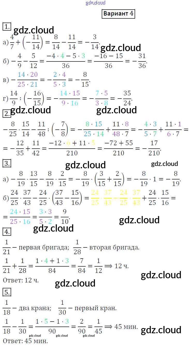 КР-4. Варианты Ответы к Контрольным работам по Математике 6 класс Дидактические материалы Потапов МГУ - школе Просвещение