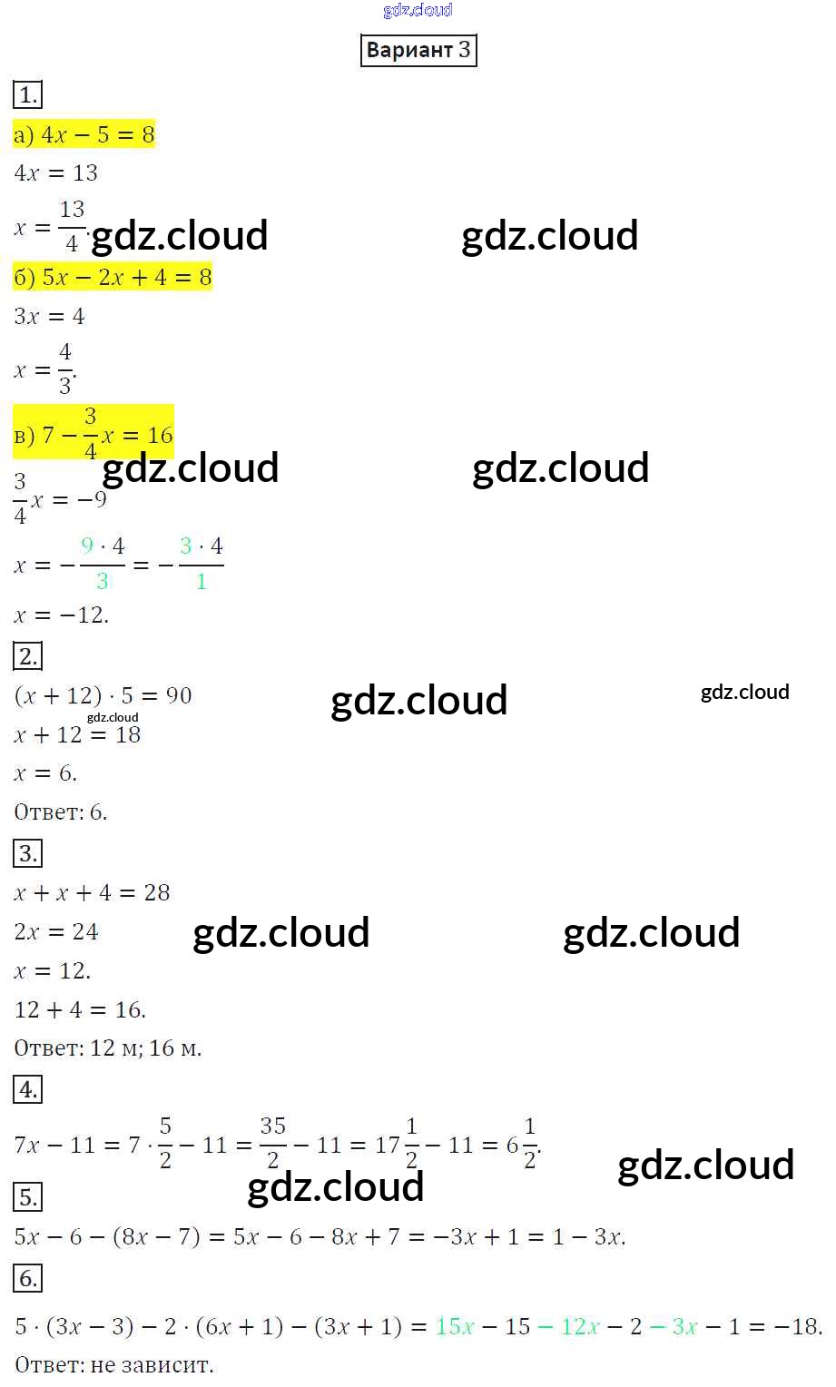 КР-5. Варианты Ответы к Контрольным работам по Математике 6 класс Дидактические материалы Потапов МГУ - школе Просвещение