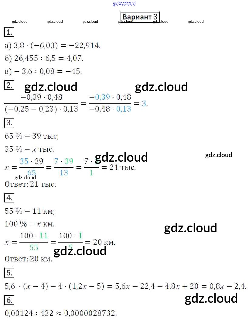 КР-7. Варианты Ответы к Контрольным работам по Математике 6 класс Дидактические материалы Потапов МГУ - школе Просвещение
