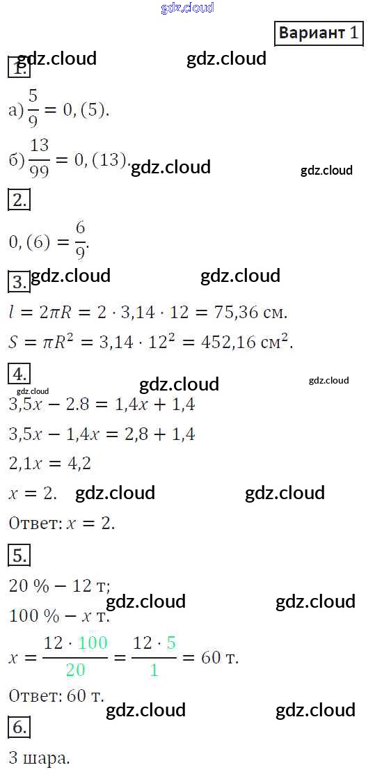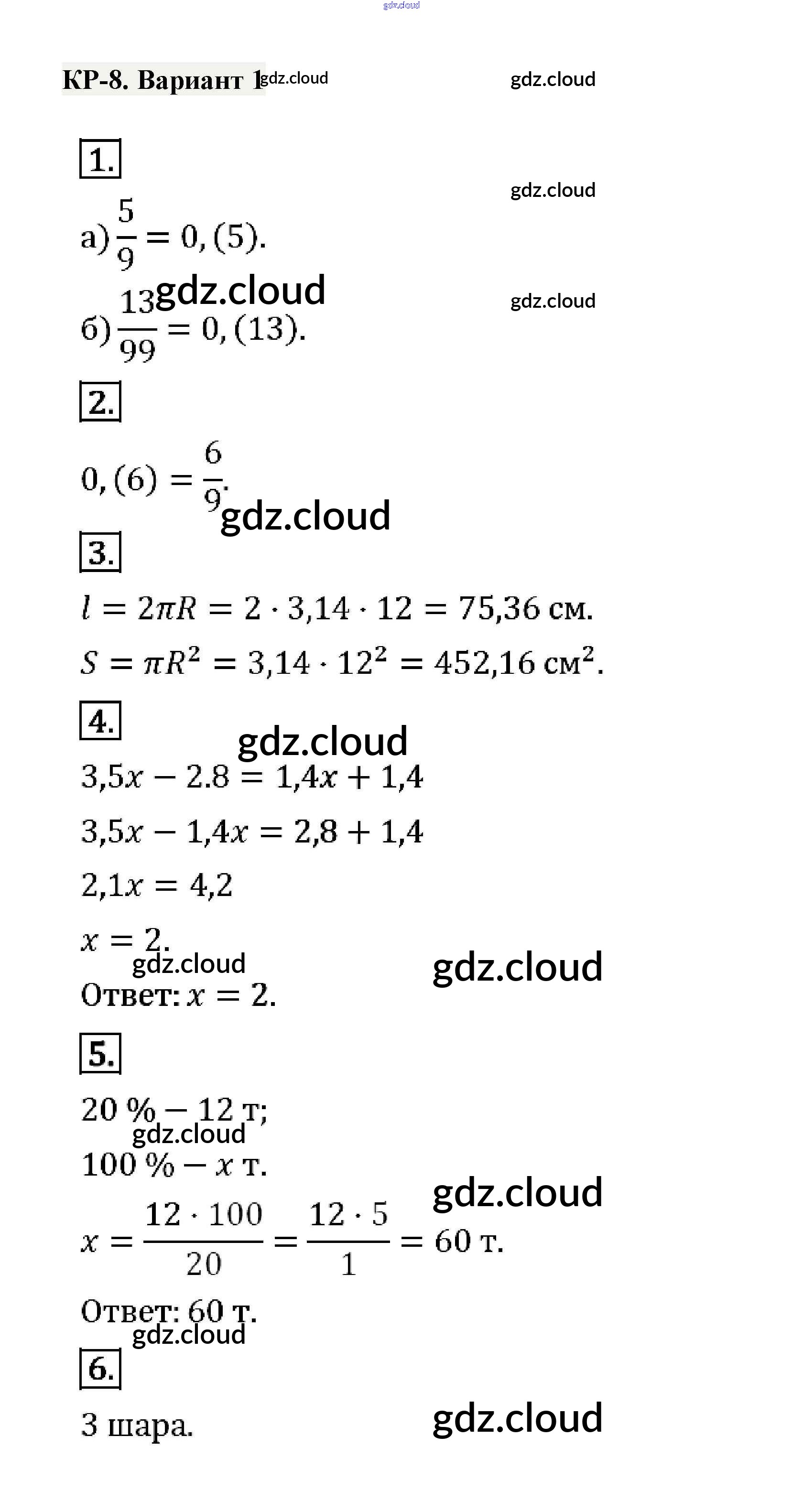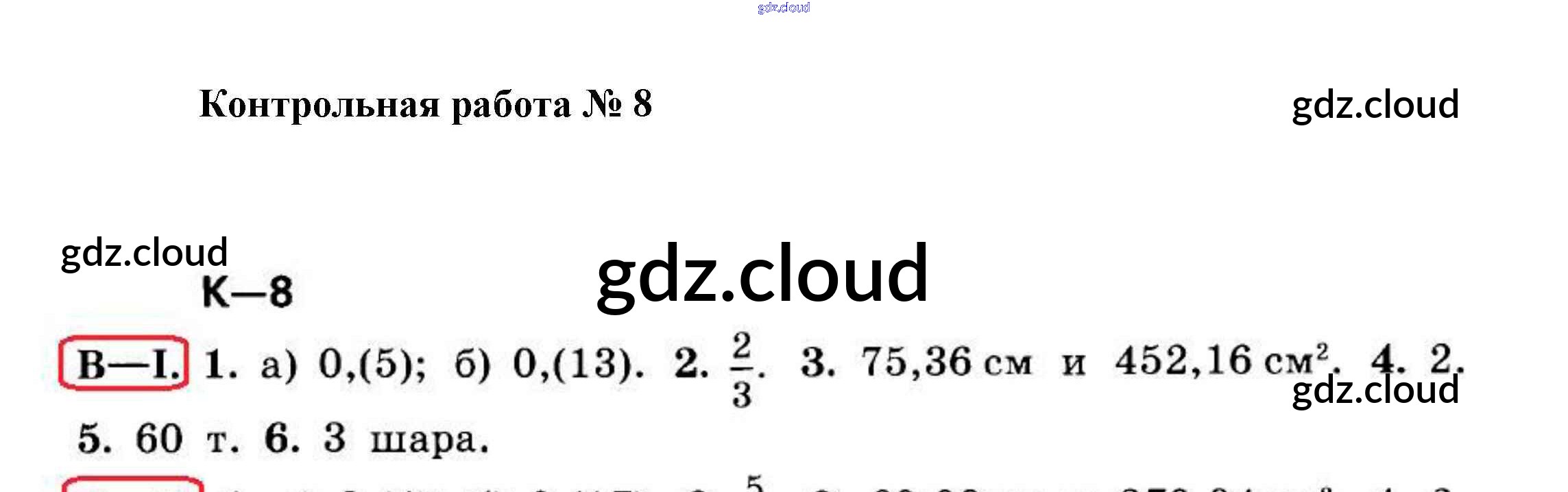 КР-8. Варианты Ответы к Контрольным работам по Математике 6 класс Дидактические материалы Потапов МГУ - школе Просвещение