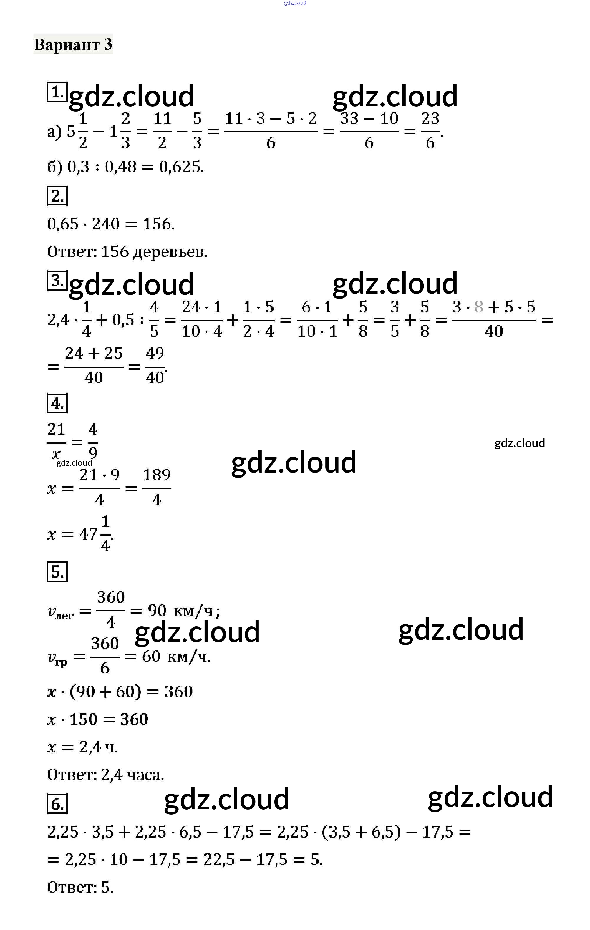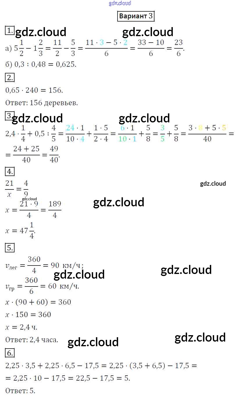КР-9. Варианты Ответы к Контрольным работам по Математике 6 класс Дидактические материалы Потапов МГУ - школе Просвещение