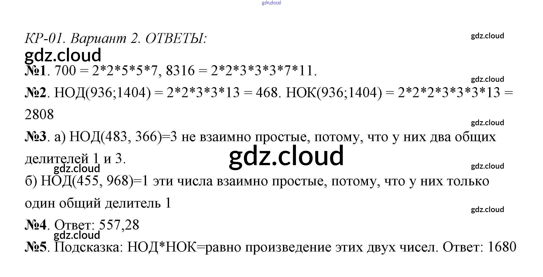 Контрольная работа 1 (Варианты) Ответы к Контрольным работам по Математике 6 класс Контрольно-измерительные материалы (КИМ) Попова ВАКО