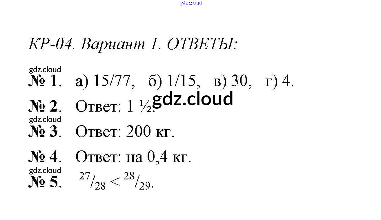 Контрольная работа 4 (Варианты) Ответы к Контрольным работам по Математике 6 класс Контрольно-измерительные материалы (КИМ) Попова ВАКО
