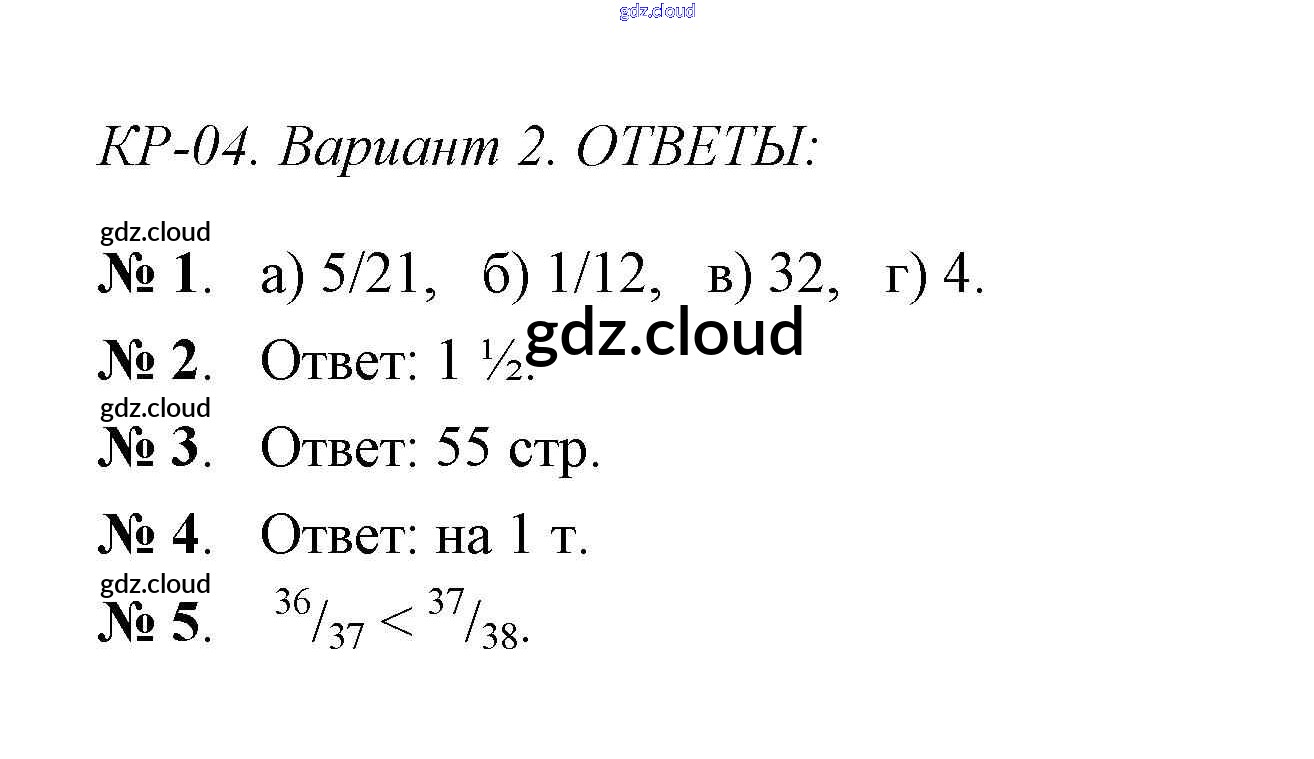 Контрольная работа 4 (Варианты) Ответы к Контрольным работам по Математике 6 класс Контрольно-измерительные материалы (КИМ) Попова ВАКО