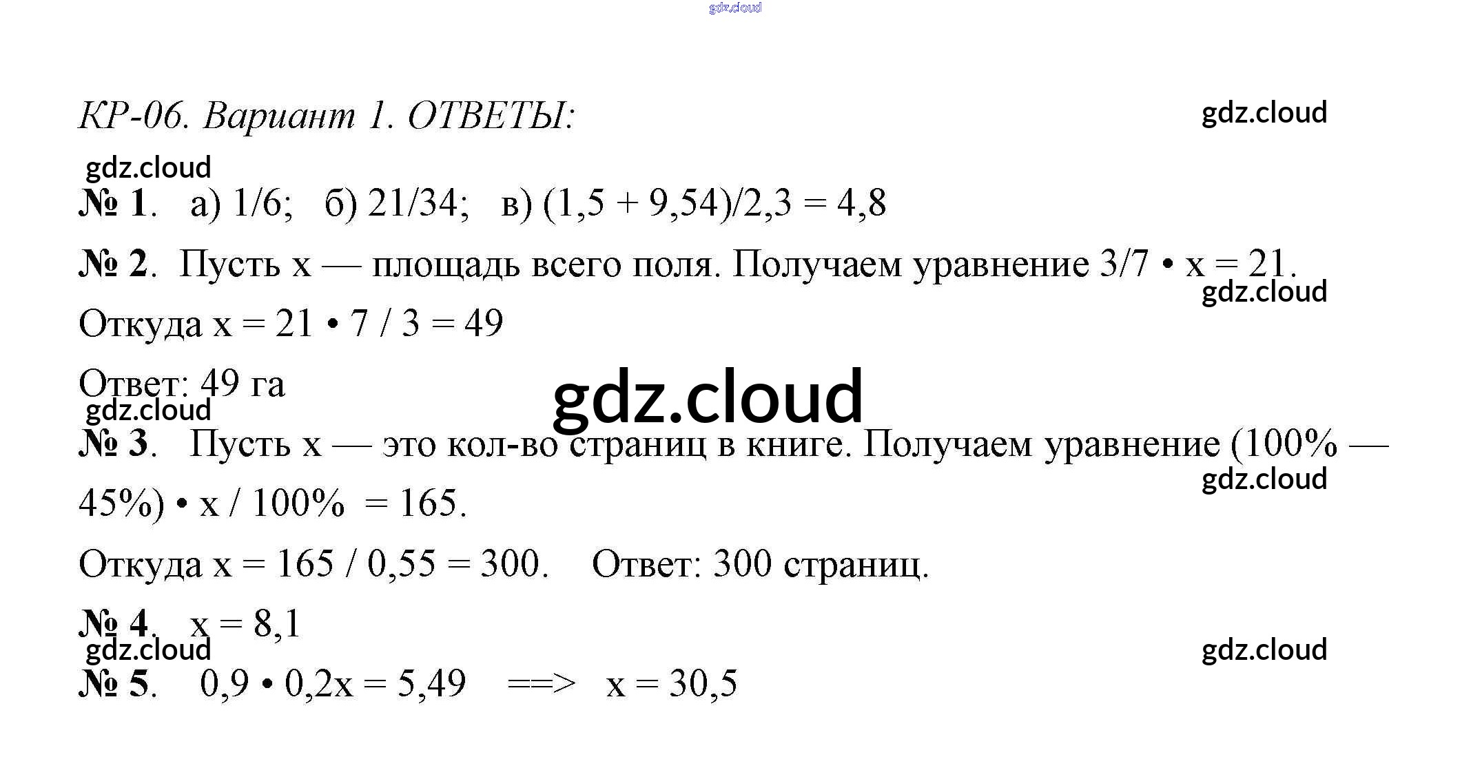 Контрольная работа 6 (Варианты) Ответы к Контрольным работам по Математике 6 класс Контрольно-измерительные материалы (КИМ) Попова ВАКО