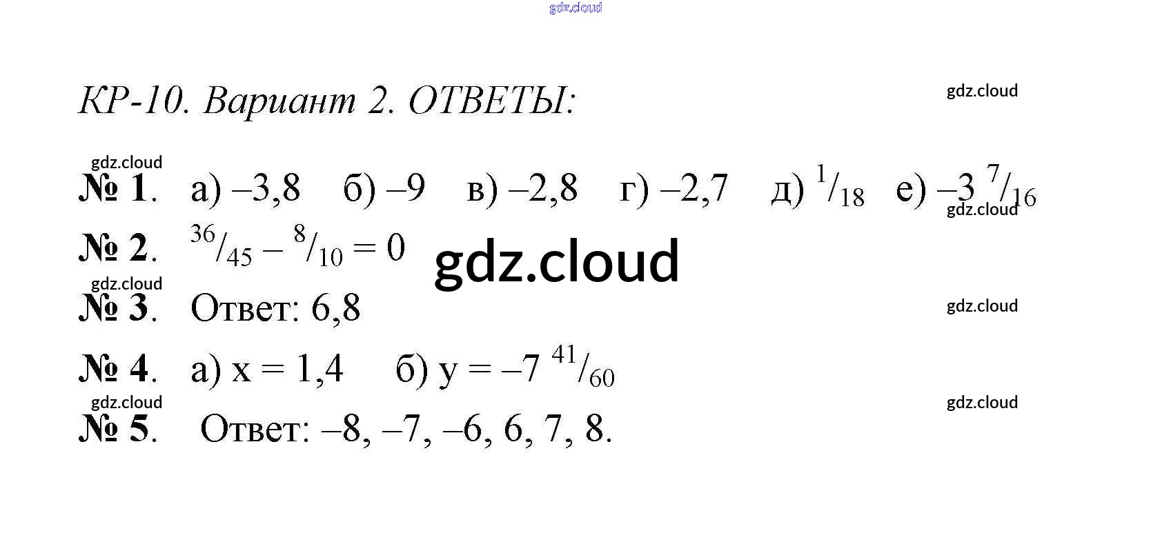 Контрольная работа 10 (Варианты) Ответы к Контрольным работам по Математике 6 класс Контрольно-измерительные материалы (КИМ) Попова ВАКО