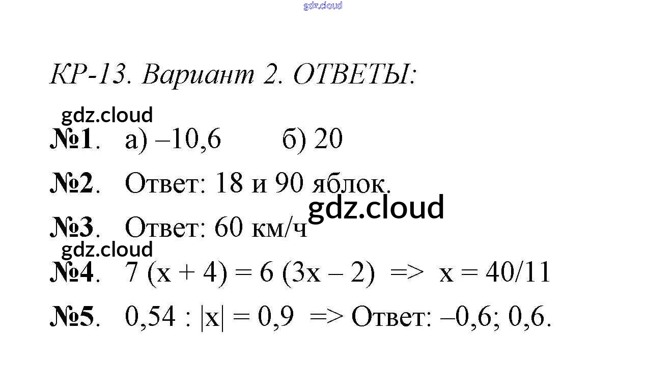 Контрольная работа 13 (Варианты) Ответы к Контрольным работам по Математике 6 класс Контрольно-измерительные материалы (КИМ) Попова ВАКО