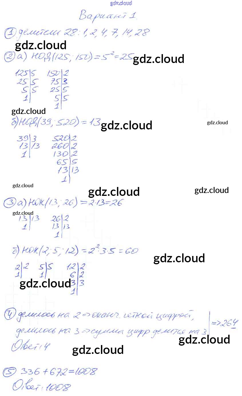 КР-1. Варианты Ответы к Контрольным работам по Математике 6 класс Самостоятельные и контрольные работы Попов УМК Экзамен
