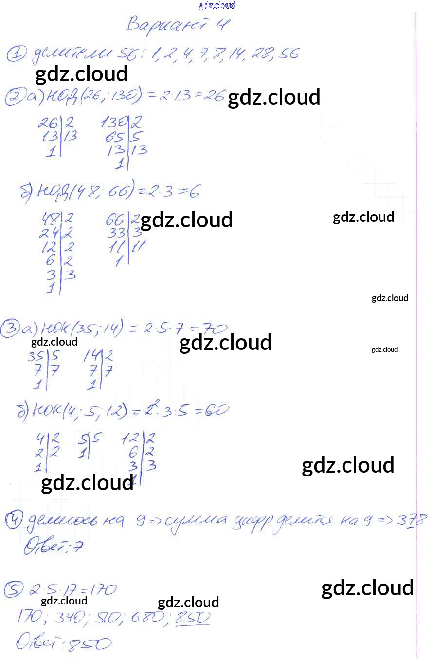 КР-1. Варианты Ответы к Контрольным работам по Математике 6 класс Самостоятельные и контрольные работы Попов УМК Экзамен