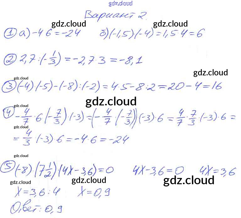КР-8. Варианты Ответы к Контрольным работам по Математике 6 класс Самостоятельные и контрольные работы Попов УМК Экзамен