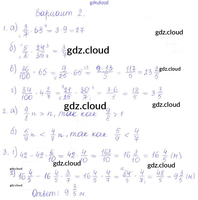 Ответ на задание 2 Контрольные и самостоятельные работы Математика за 6 (шестой) класс Журавлев, Изотова, Киреева УМК 2015
