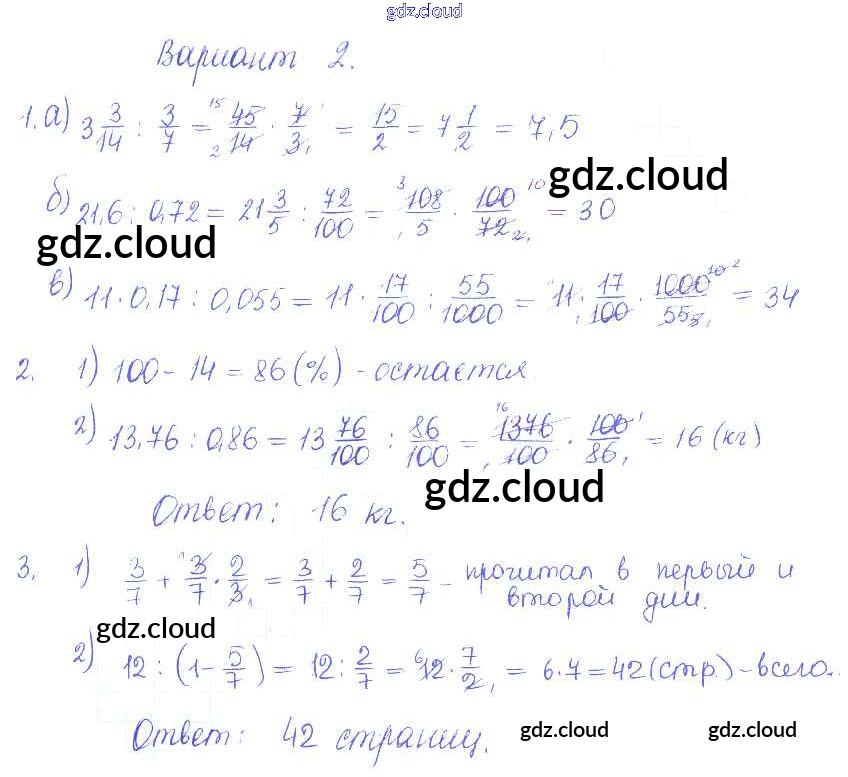 Ответ на задание 2 Контрольные и самостоятельные работы Математика за 6 (шестой) класс Журавлев, Изотова, Киреева УМК 2015