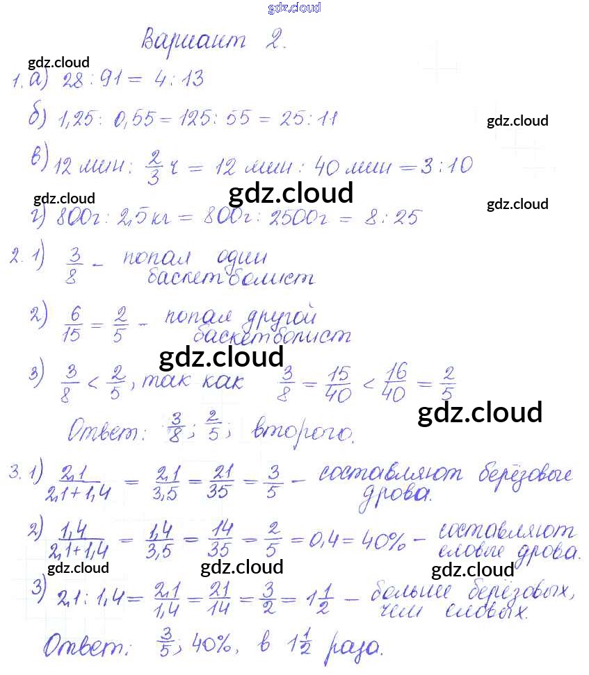 Ответ на задание 2 Контрольные и самостоятельные работы Математика за 6 (шестой) класс Журавлев, Изотова, Киреева УМК 2015