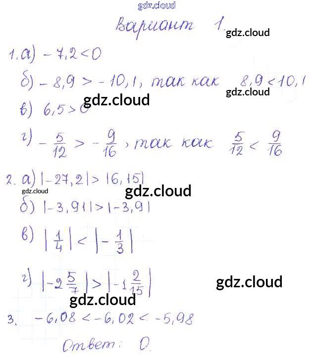 Ответ на задание 1 Контрольные и самостоятельные работы Математика за 6 (шестой) класс Журавлев, Изотова, Киреева УМК 2015