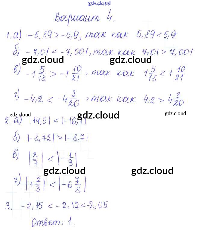Ответ на задание 4 Контрольные и самостоятельные работы Математика за 6 (шестой) класс Журавлев, Изотова, Киреева УМК 2015