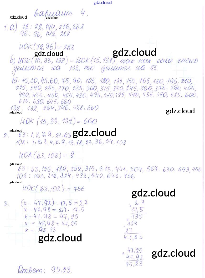 СР-7. Варианты Ответы к Самостоятельным работам по Математике 6 класс Контрольные и самостоятельные работы Журавлев УМК Экзамен