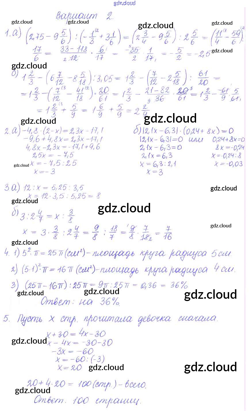КР-10. Варианты Ответы к Контрольным работам по Математике 6 класс Контрольные и самостоятельные работы Журавлев УМК Экзамен