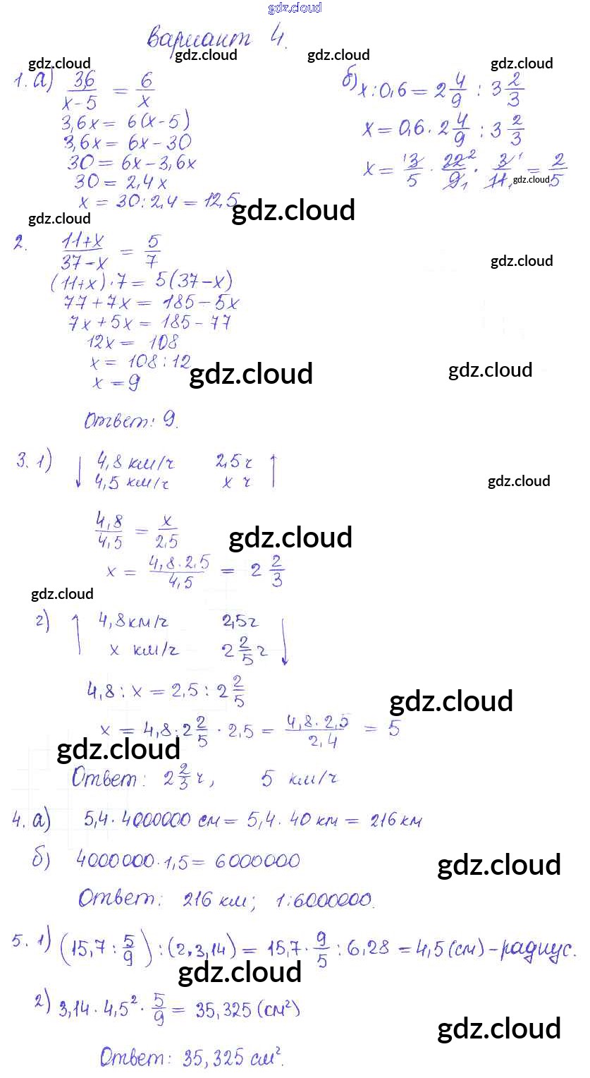 КР-4. Варианты Ответы к Контрольным работам по Математике 6 класс Контрольные и самостоятельные работы Журавлев УМК Экзамен